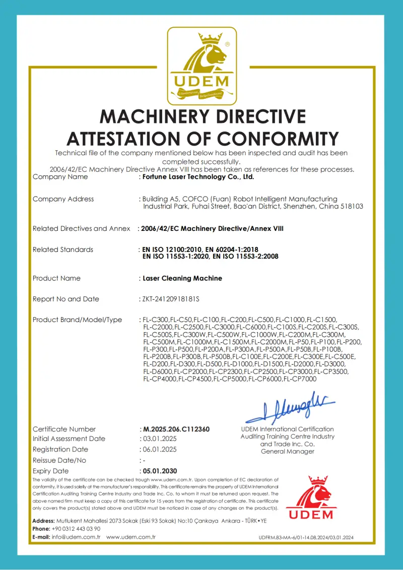 The Fortunelaser 1500W/2000W continuous wave laser cleaning system is made for tough industrial jobs. It works well in places where speed, large surface cleaning, and smart controls are needed. Using a powerful 1500W/2000W laser, this machine can quickly remove rust, paint, grease, and other dirt from big metal surfaces. It’s great for cleaning things like tanks, pipes, bridges, ship hulls, and large steel structures.